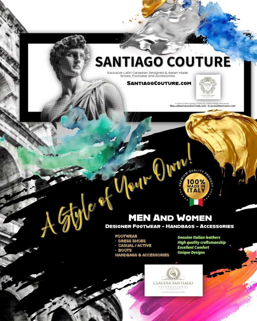 Claudia Santiago International has launched new designer leather shoes, boots and handbags and accessories line called “SANTIAGO COUTURE” crafted in Italy!